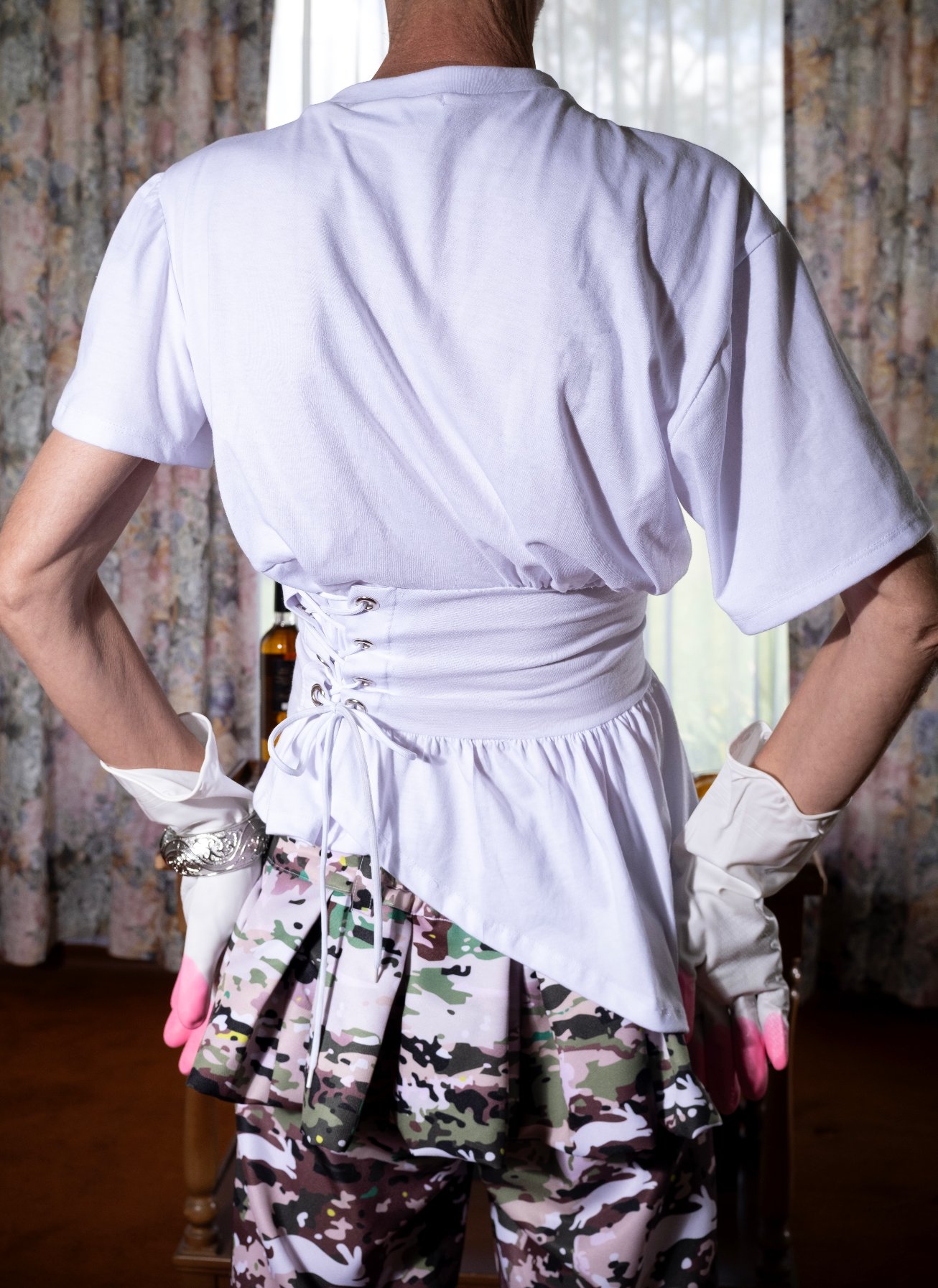 Camiseta deconstruida que se regula el ancho de la cintura, hecha de algodón, cómoda y única.